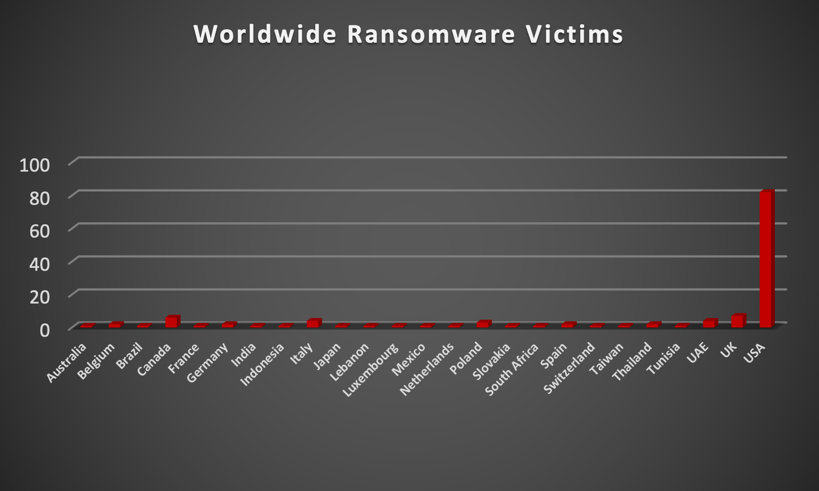 In a comprehensive analysis of ransomware victims across 28 countries, the United States emerges as the most heavily impacted nation, reporting a staggering 82 victim updates in the past week. The following list provides a breakdown of the number and percentage of new ransomware victims per country, underscoring the persistent and concerning prevalence of ransomware attacks, with the USA particularly susceptible to these cybersecurity threats.